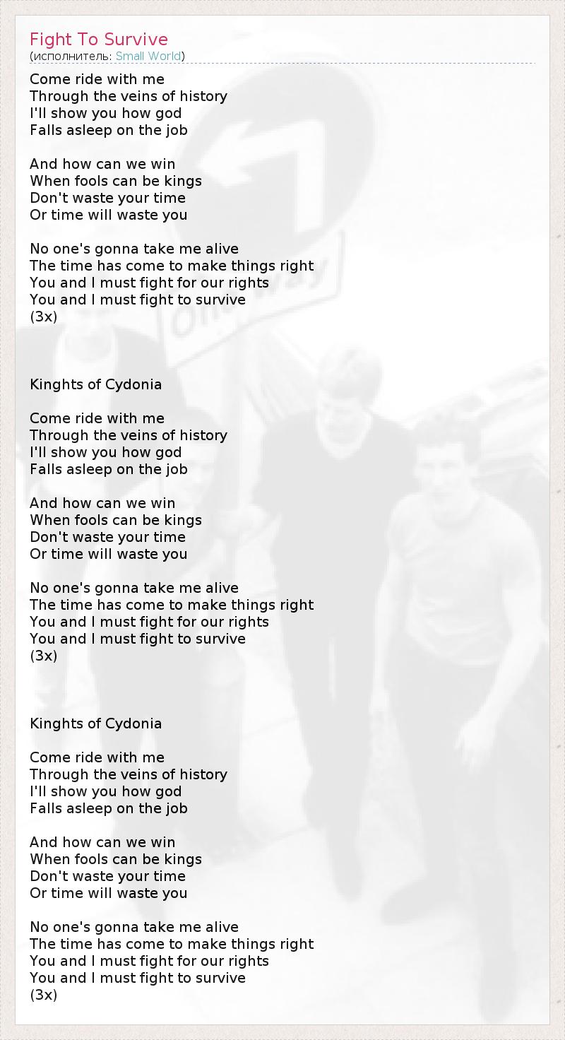 А как ты думаешь, о чем песня "Fight To Survive" ?