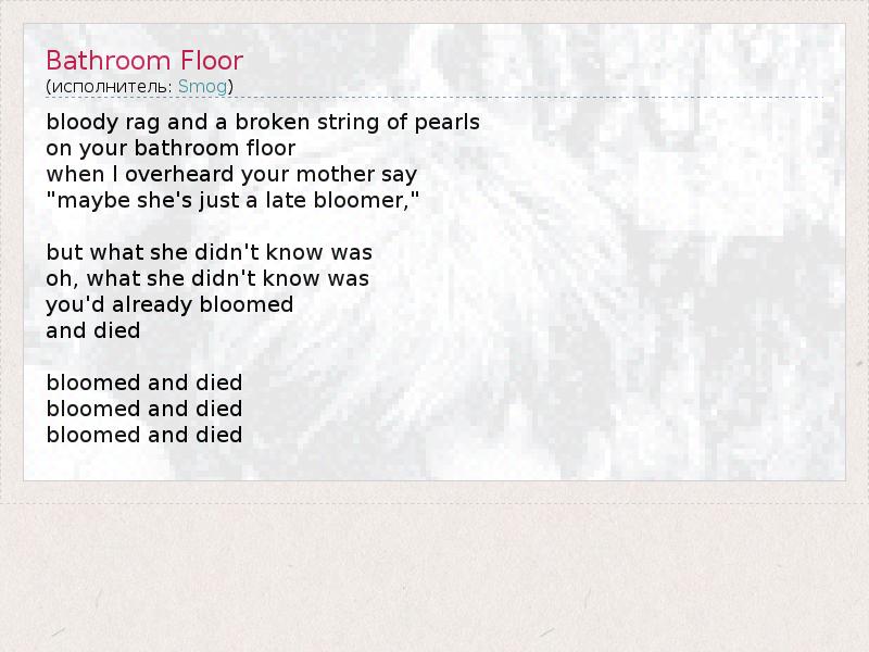 А как ты думаешь, о чем песня "Bathroom Floor" ?