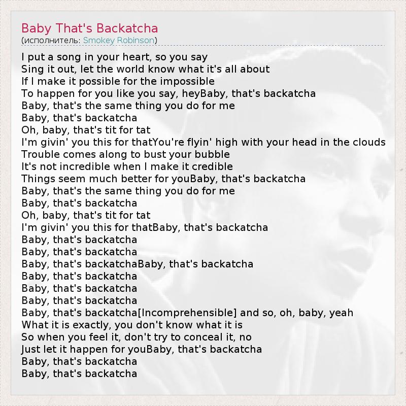 А как ты думаешь, о чем песня "Baby That's Backatcha" ?