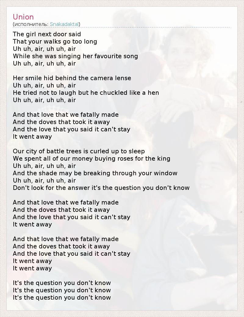 А как ты думаешь, о чем песня "Union" ?