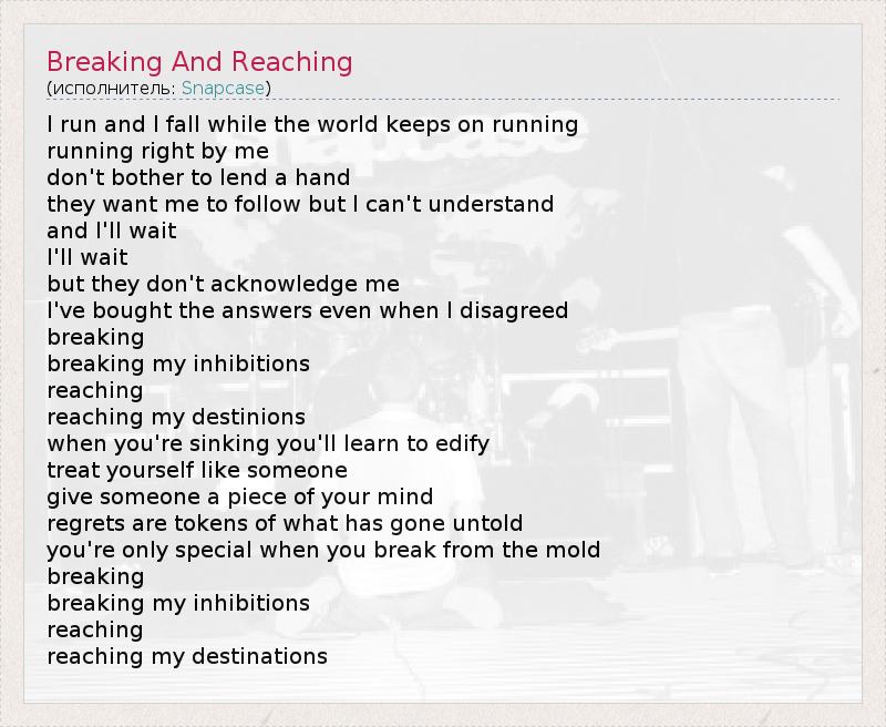 А как ты думаешь, о чем песня "Breaking And Reaching" ?