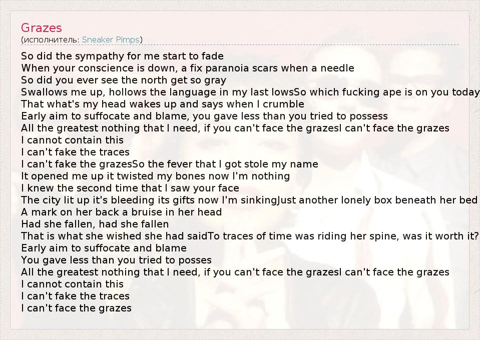 All the greatest nothing that I need, if you can't face the grazesI can't face the grazes