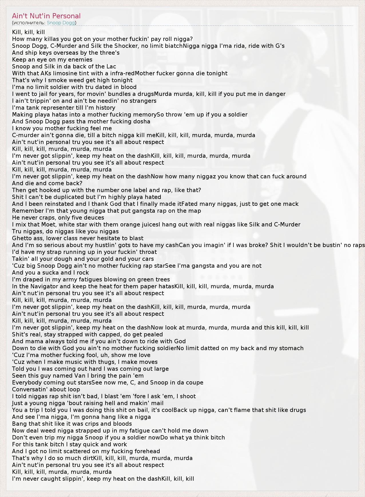 А как ты думаешь, о чем песня "Ain't Nut'in Personal" ?