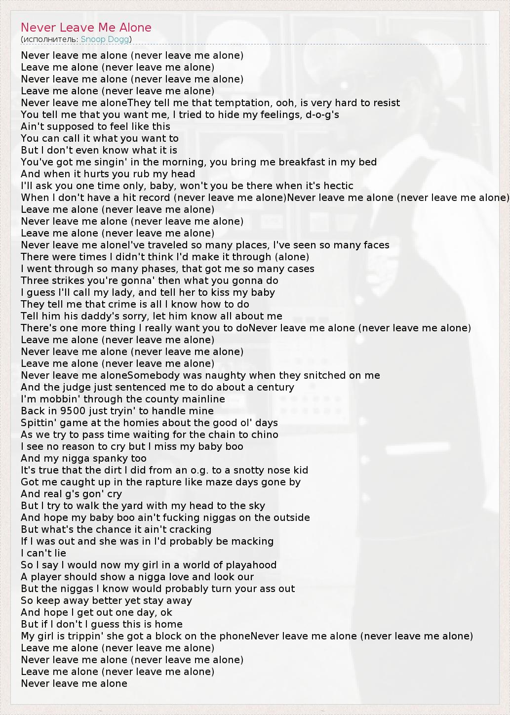 А как ты думаешь, о чем песня "Never Leave Me Alone" ?