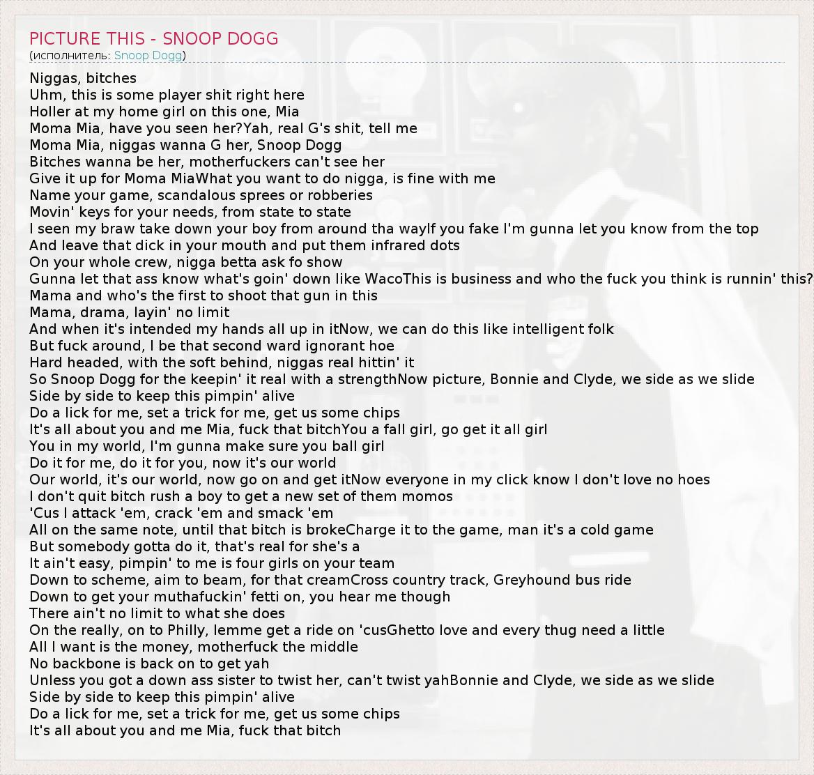 ГлавнаяИсполнителиSnoop DoggPICTURE THIS - SNOOP DOGG