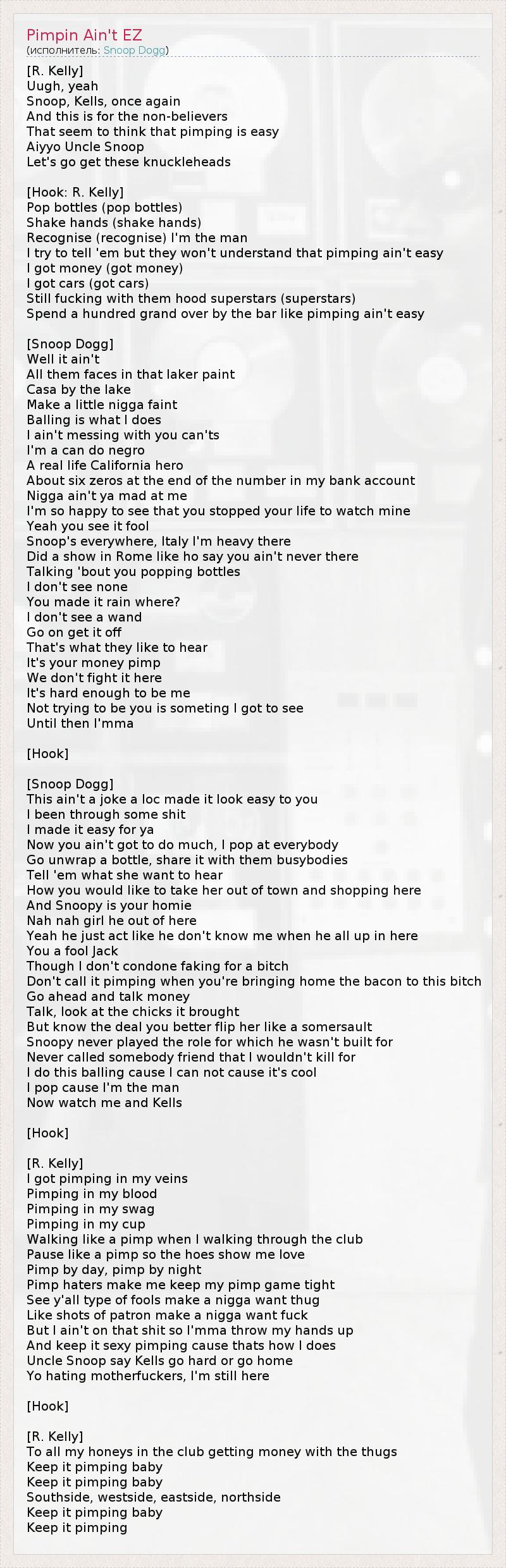 А как ты думаешь, о чем песня "Pimpin Ain't EZ" ?
