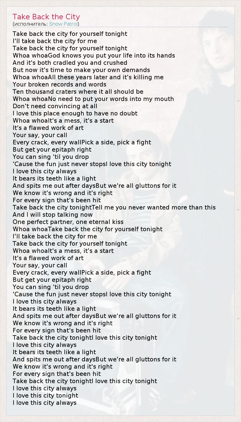 А как ты думаешь, о чем песня "Take Back the City" ?