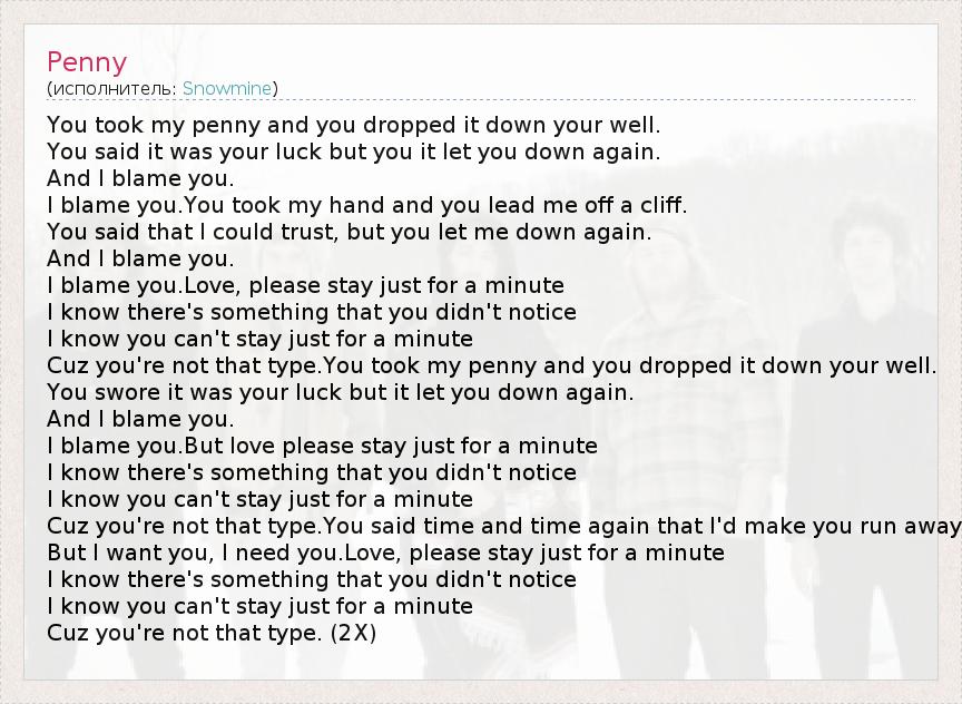 Cuz you're not that type.You took my penny and you dropped it down your well.
