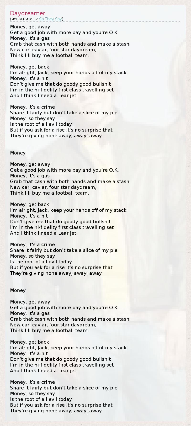 Money, get away