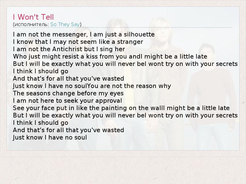 А как ты думаешь, о чем песня "I Won't Tell" ?