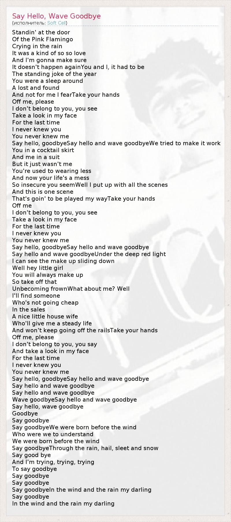 А как ты думаешь, о чем песня "Say Hello, Wave Goodbye" ?