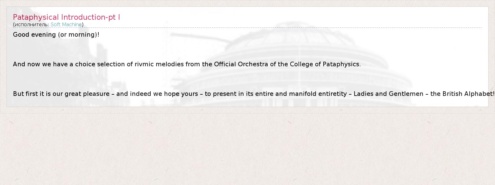 ГлавнаяИсполнителиSoft MachinePataphysical Introduction-pt I