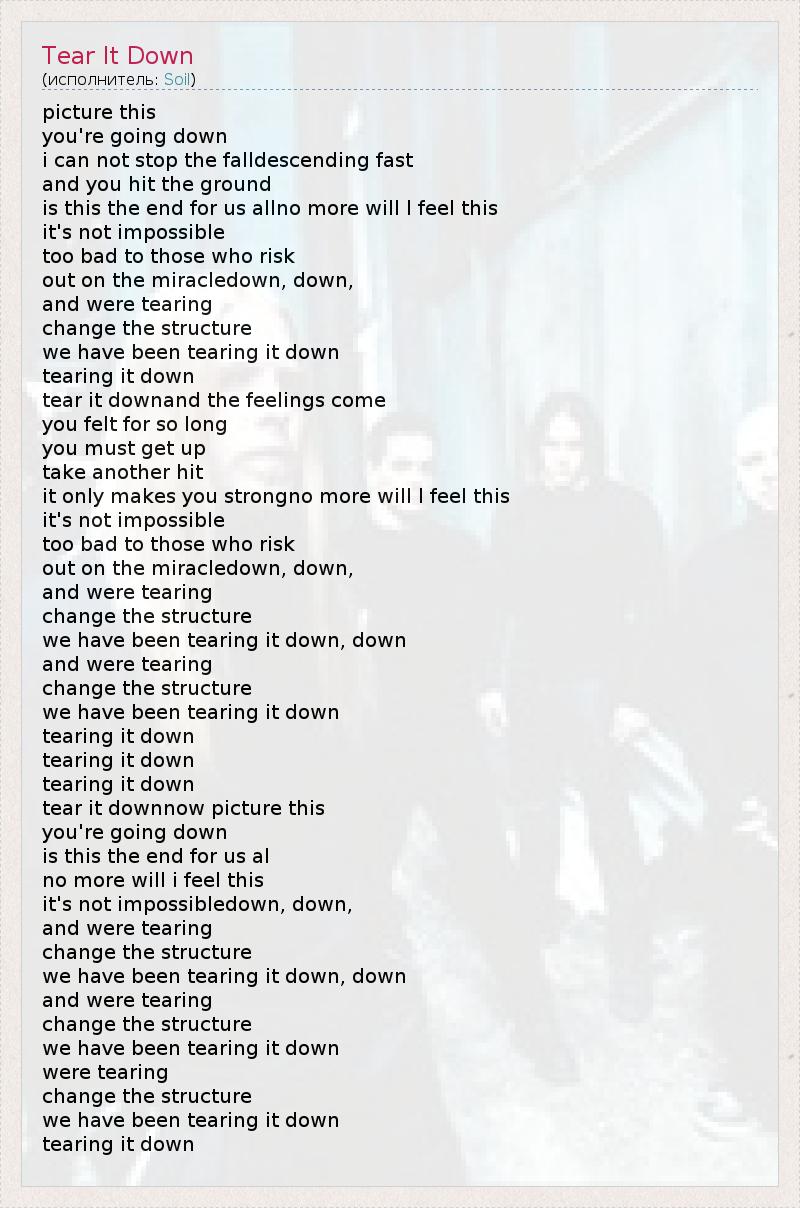 А как ты думаешь, о чем песня "Tear It Down" ?