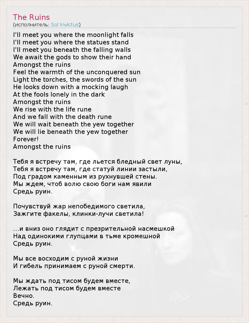 Это интересно:Карьера Тони Вэйкфорда (Tony Wakeford) началась в панк-группе Crisis, которая довольно скоро преобразовалась в Death In June. Вскоре Death In June переходит под единоличное управление Дугласа Пирса, а Тони выходит из состава, чтобы основать Sol Invictus. Перед этим он записывает сольный альбом Songs Of The Wolf от имени группы Above... продолжение