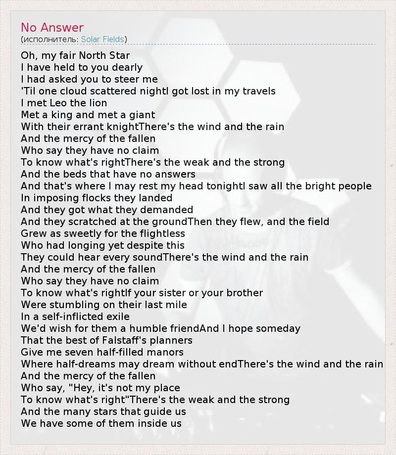 А как ты думаешь, о чем песня "No Answer" ?
