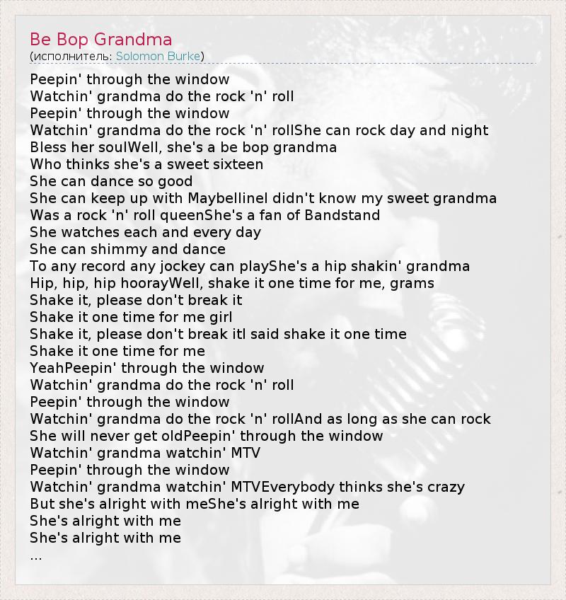 А как ты думаешь, о чем песня "Be Bop Grandma" ?