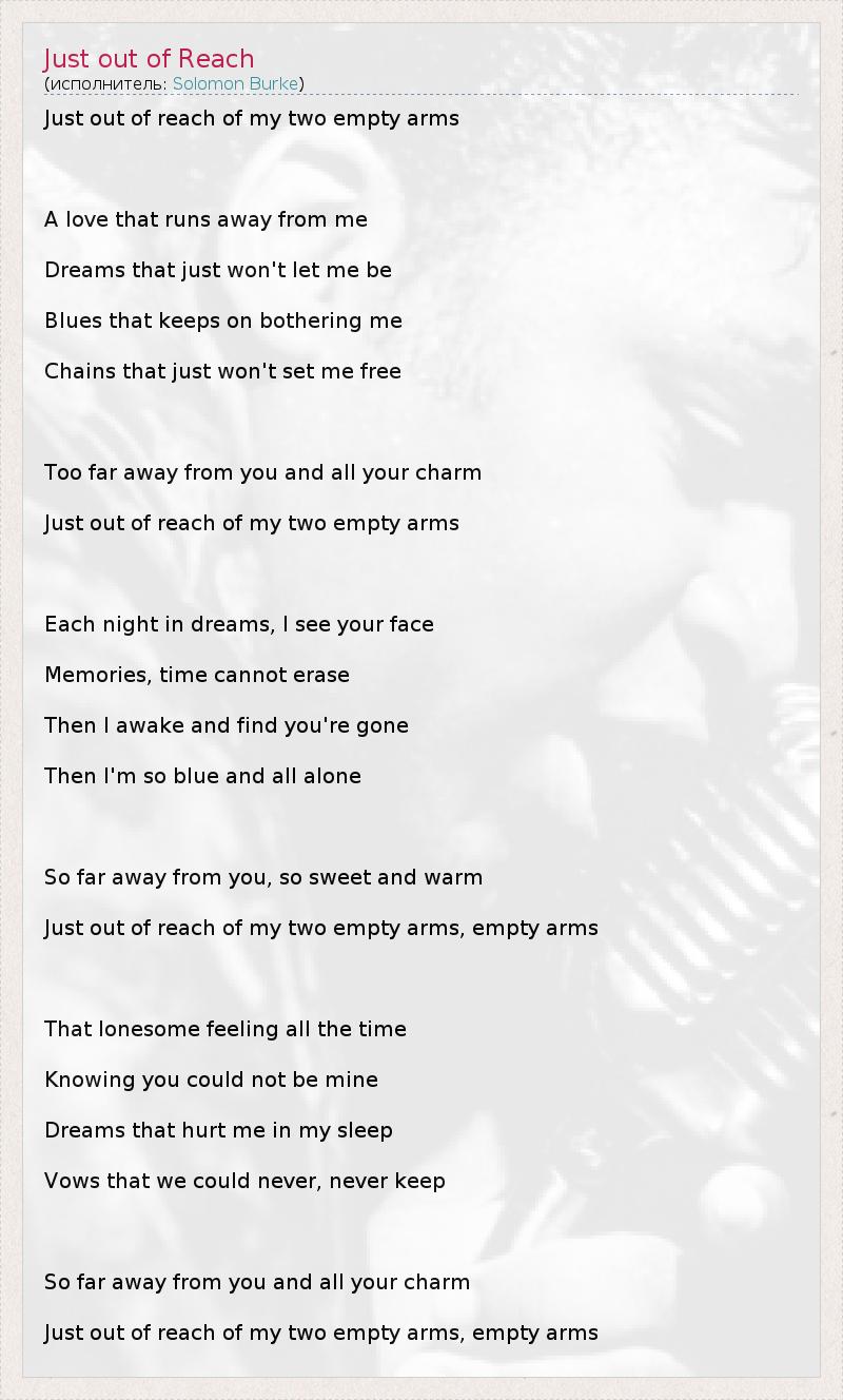 А как ты думаешь, о чем песня "Just out of Reach" ?