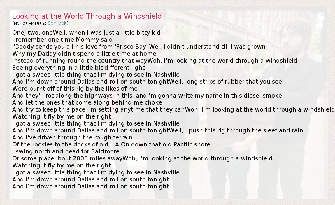 А как ты думаешь, о чем песня "Looking at the World Through a Windshield" ?