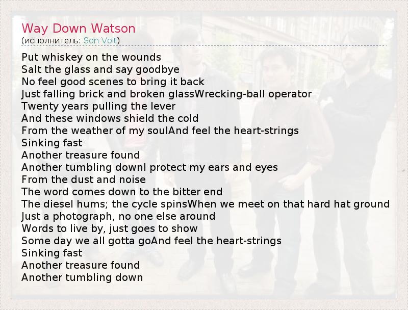 А как ты думаешь, о чем песня "Way Down Watson" ?