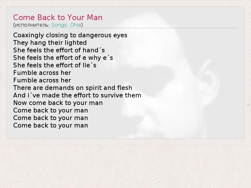 А как ты думаешь, о чем песня "Come Back to Your Man" ?