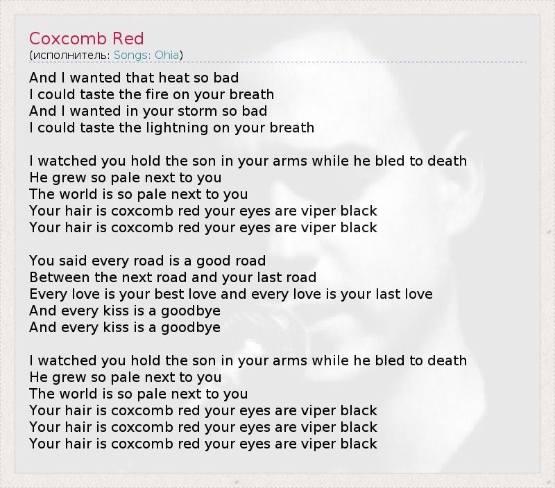 А как ты думаешь, о чем песня "Coxcomb Red" ?