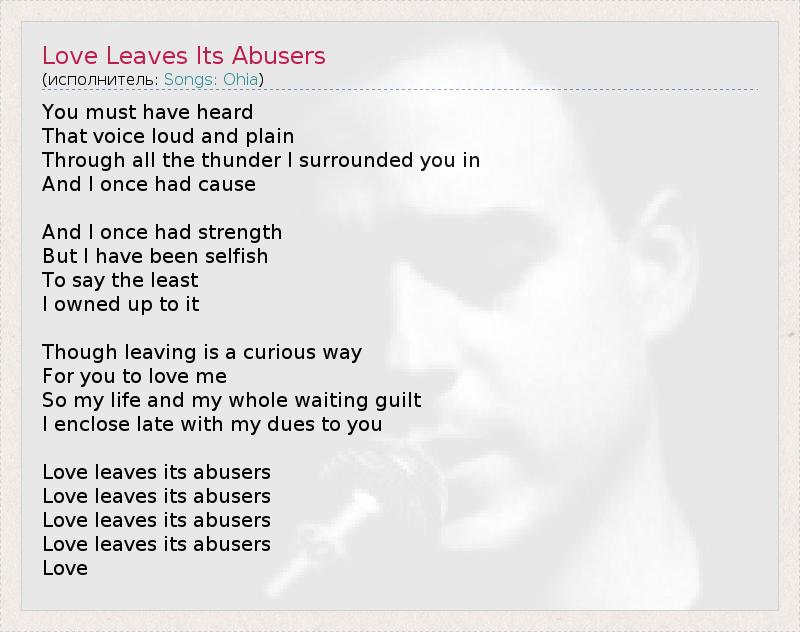 А как ты думаешь, о чем песня "Love Leaves Its Abusers" ?