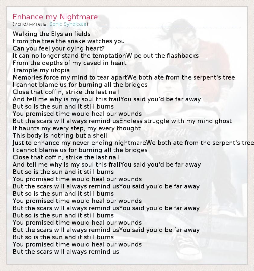 А как ты думаешь, о чем песня "Enhance my Nightmare" ?