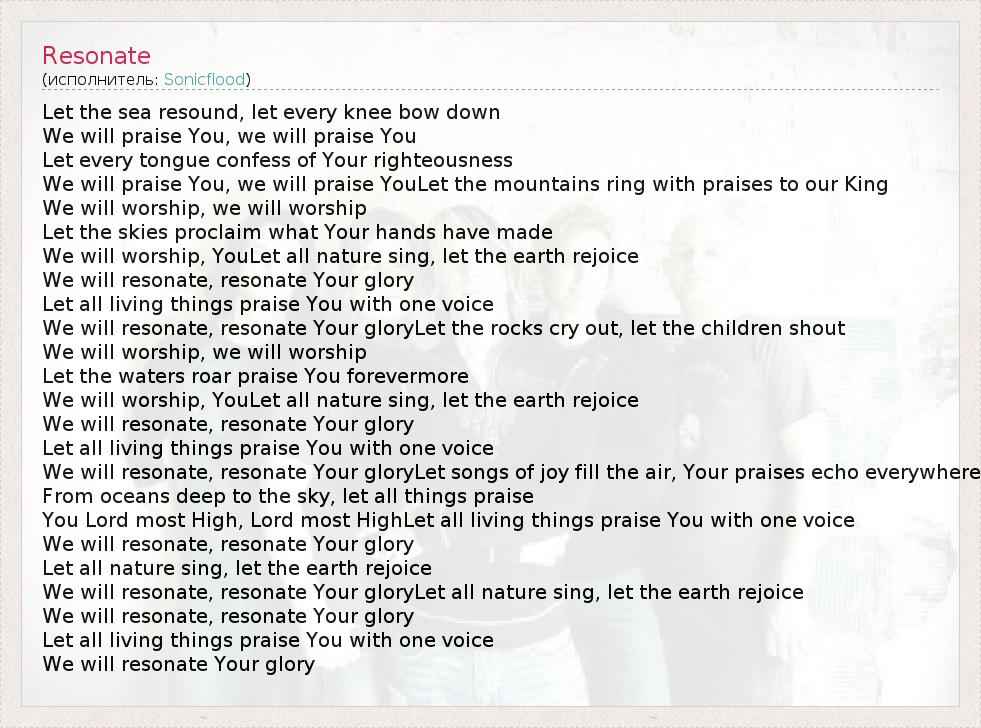 We will resonate, resonate Your gloryLet songs of joy fill the air, Your praises echo everywhere