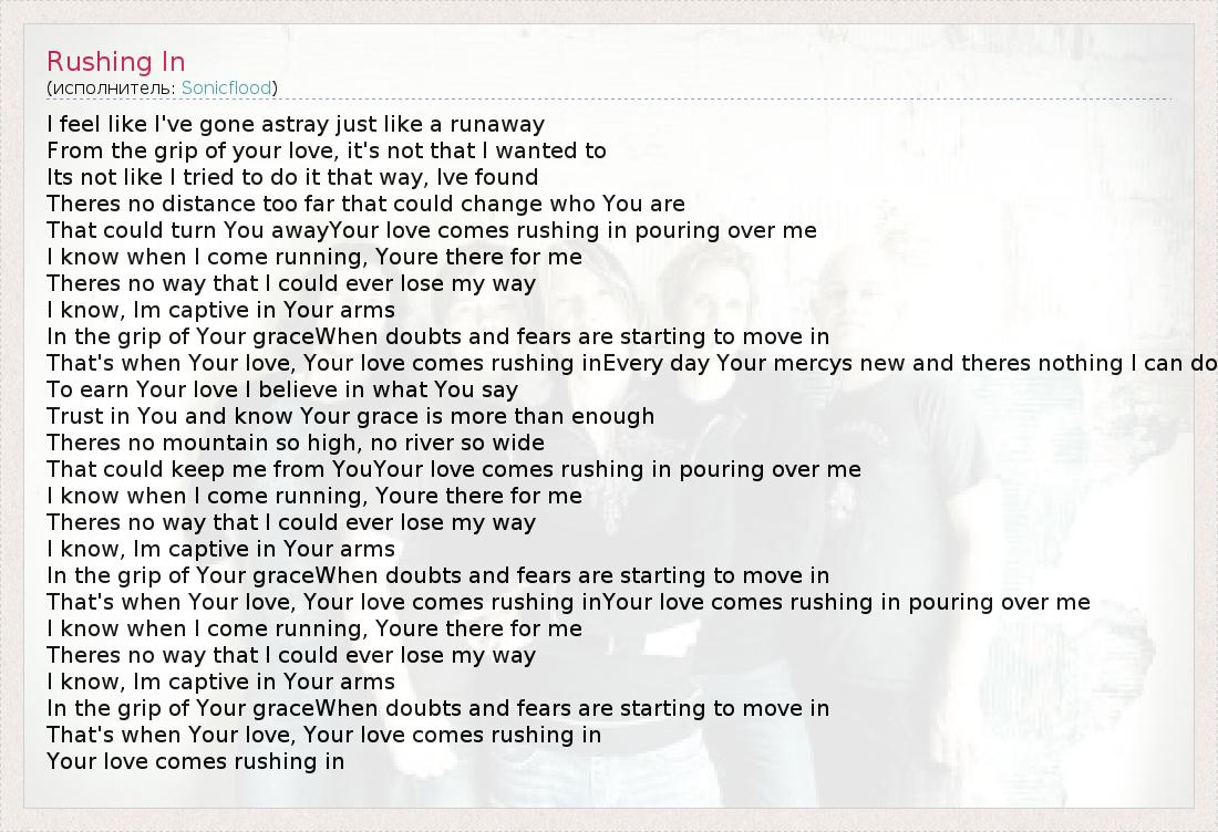 That's when Your love, Your love comes rushing inYour love comes rushing in pouring over me