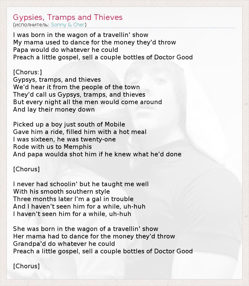 А как ты думаешь, о чем песня "Gypsies, Tramps and Thieves" ?