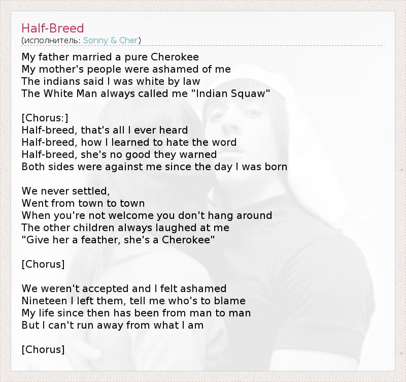 А как ты думаешь, о чем песня "Half-Breed" ?