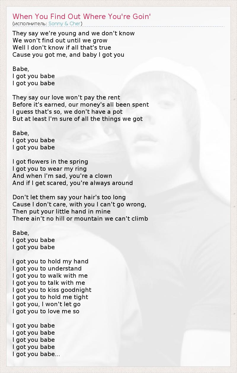 ГлавнаяИсполнителиSonny & CherWhen You Find Out Where You're Goin'