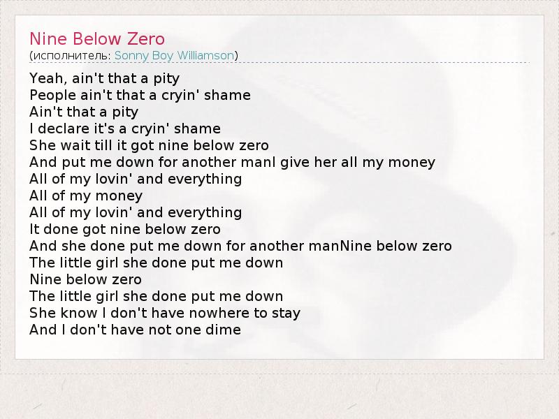 А как ты думаешь, о чем песня "Nine Below Zero" ?