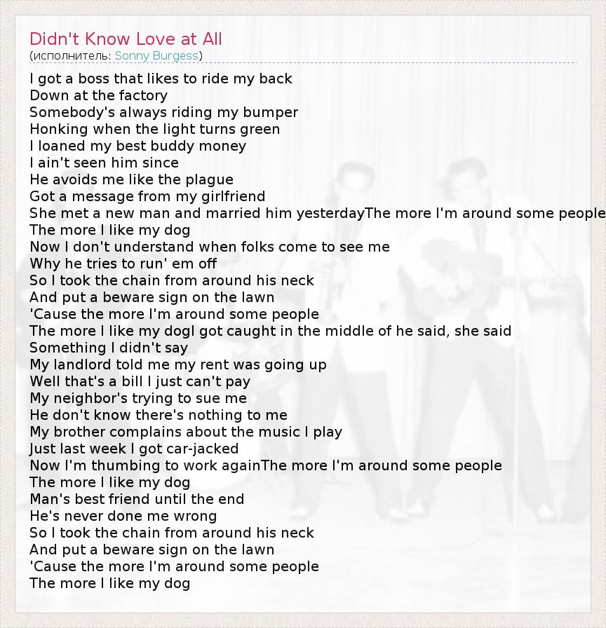 А как ты думаешь, о чем песня "Didn't Know Love at All" ?
