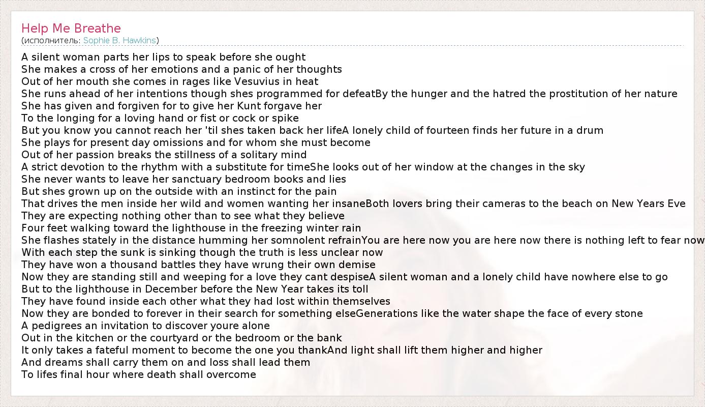 А как ты думаешь, о чем песня "Help Me Breathe" ?