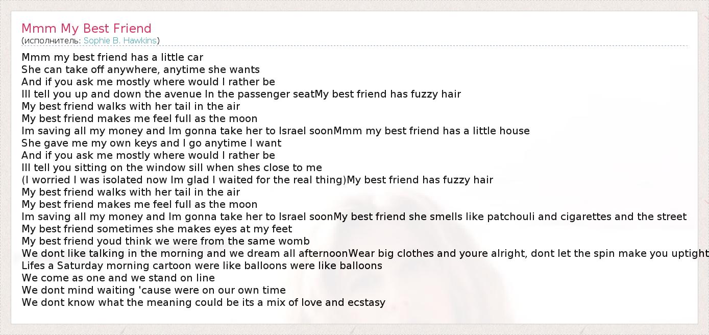 А как ты думаешь, о чем песня "Mmm My Best Friend" ?