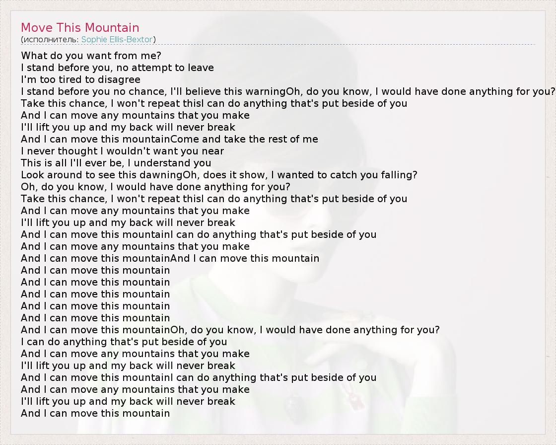 А как ты думаешь, о чем песня "Move This Mountain" ?