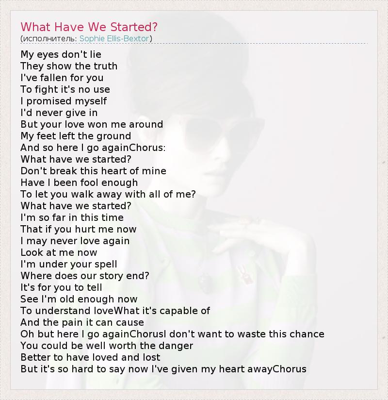 А как ты думаешь, о чем песня "What Have We Started?" ?