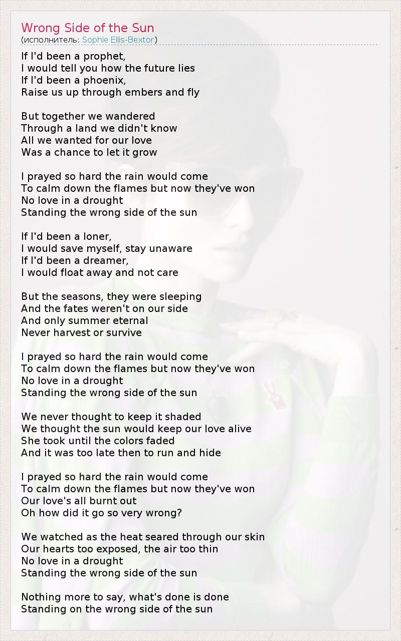 А как ты думаешь, о чем песня "Wrong Side of the Sun" ?