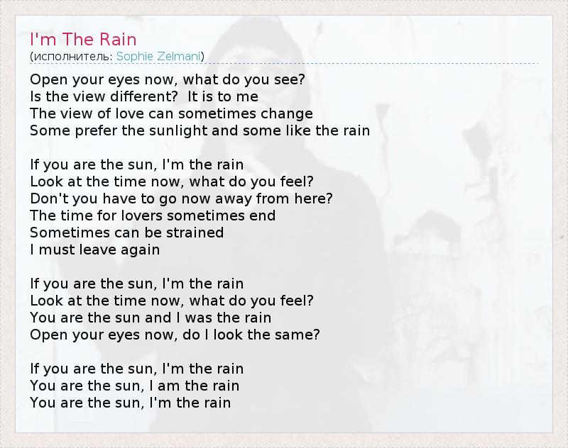 А как ты думаешь, о чем песня "I'm The Rain" ?