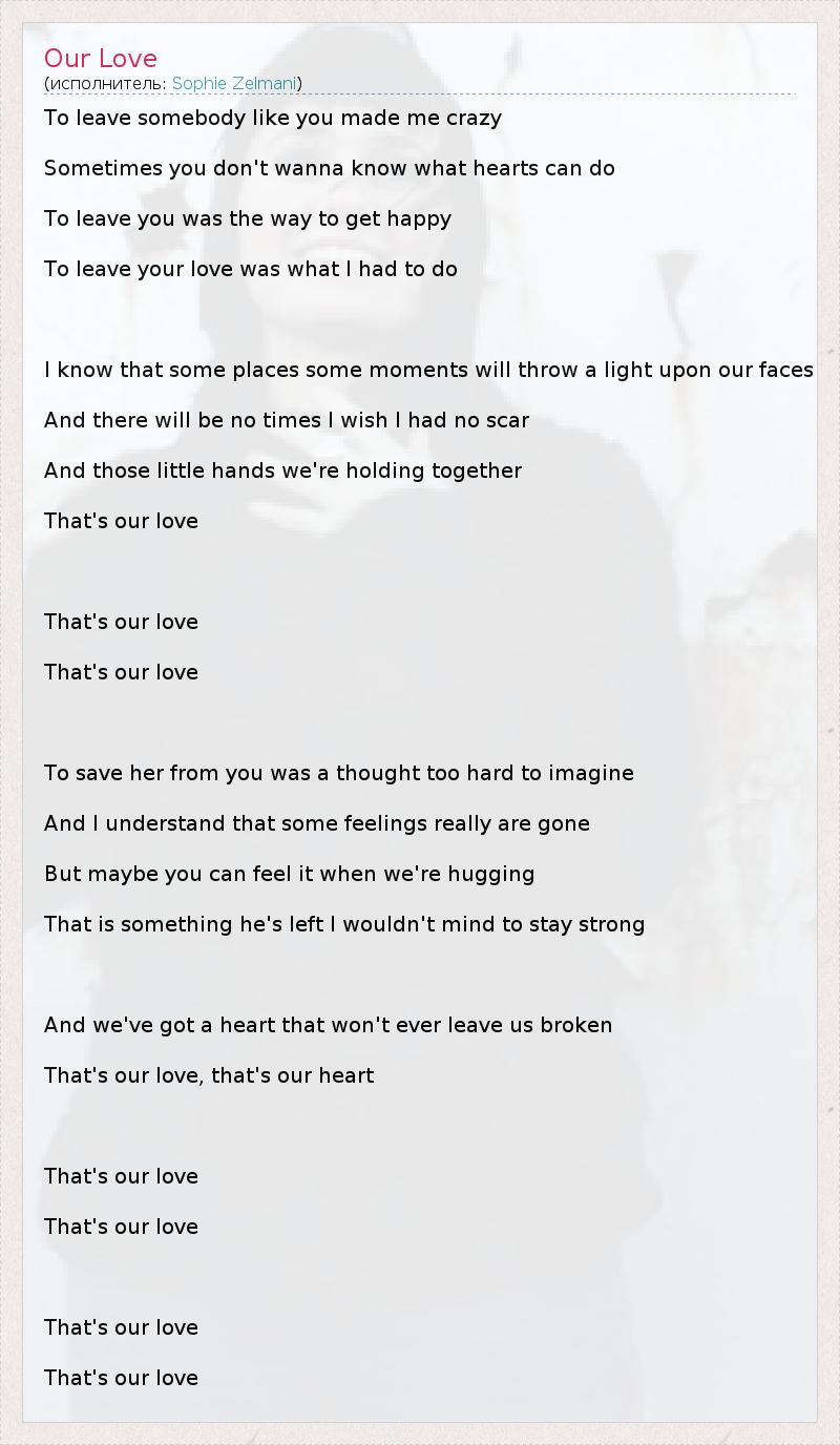 А как ты думаешь, о чем песня "Our Love" ?