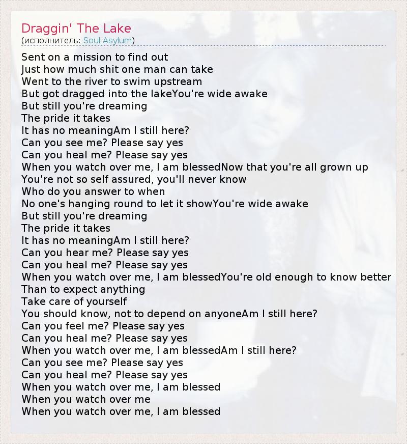 А как ты думаешь, о чем песня "Draggin' The Lake" ?