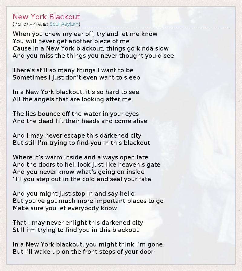 А как ты думаешь, о чем песня "New York Blackout" ?
