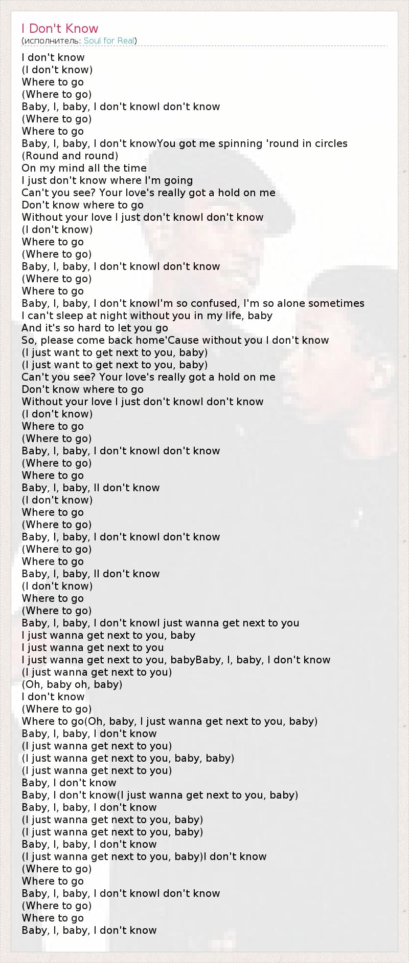 А как ты думаешь, о чем песня "I Don't Know" ?