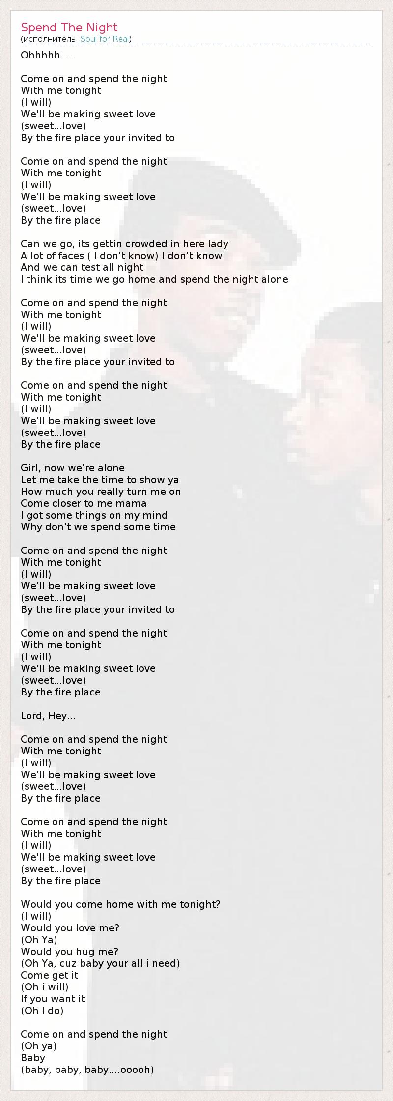 А как ты думаешь, о чем песня "Spend The Night" ?