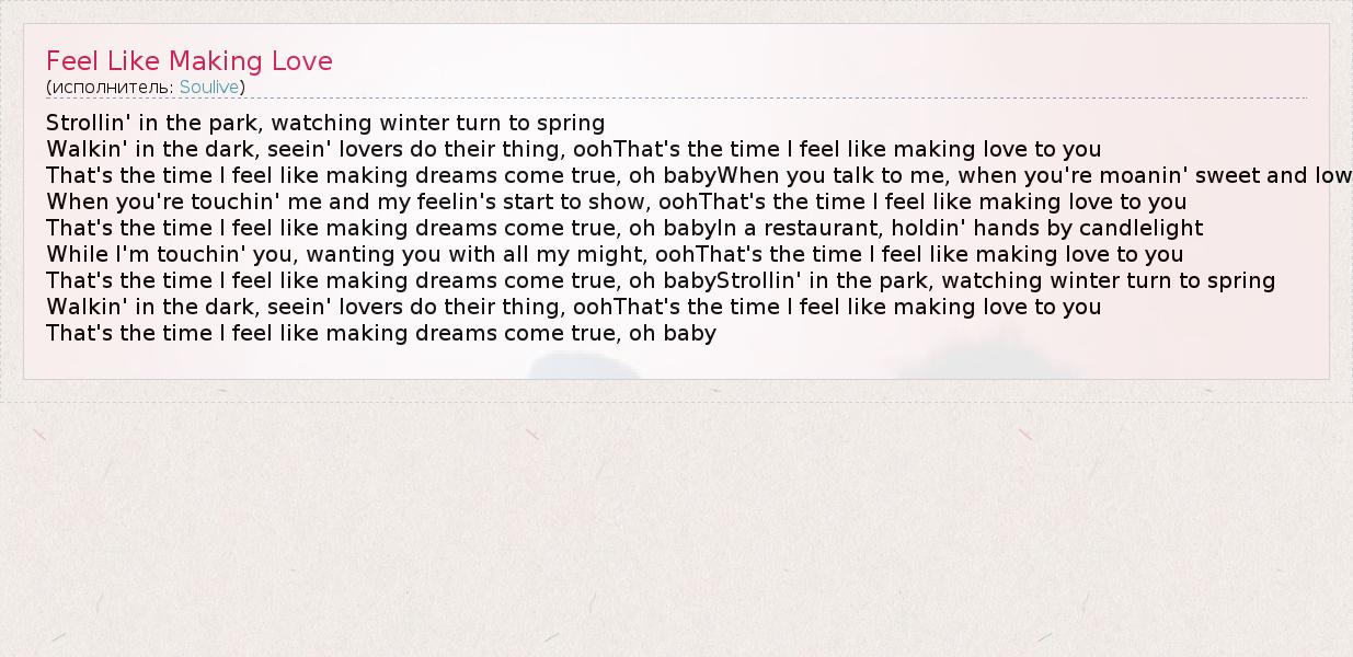 А как ты думаешь, о чем песня "Feel Like Making Love" ?