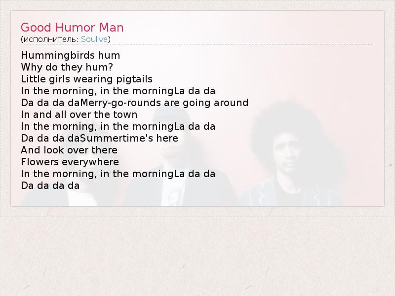 А как ты думаешь, о чем песня "Good Humor Man" ?