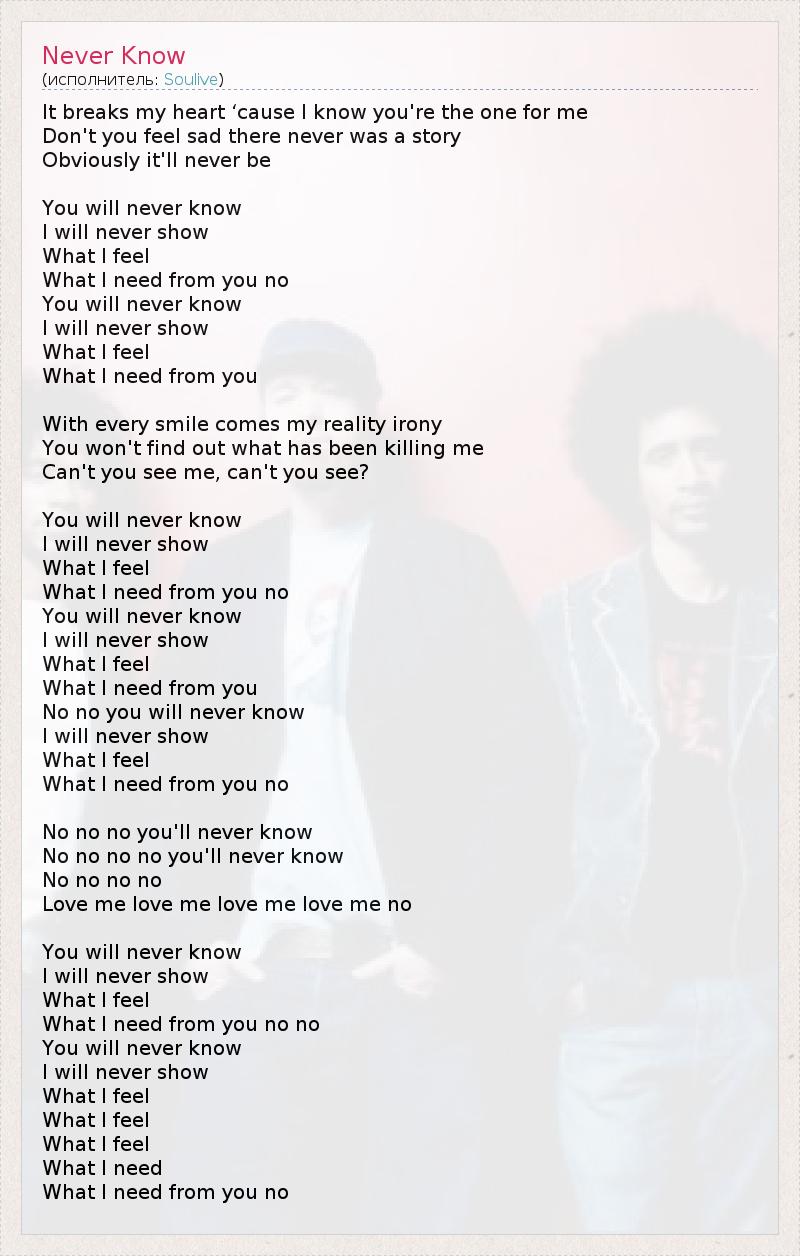 Нет, нет, нет, нет, ты никогда не узнаешь,