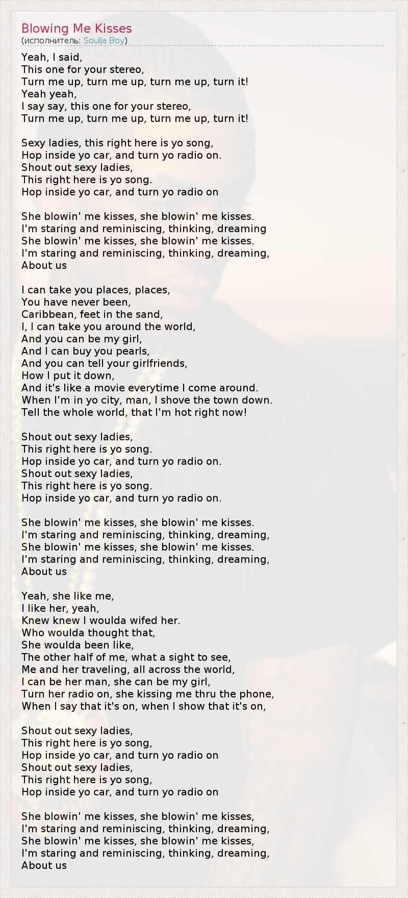 А как ты думаешь, о чем песня "Blowing Me Kisses" ?