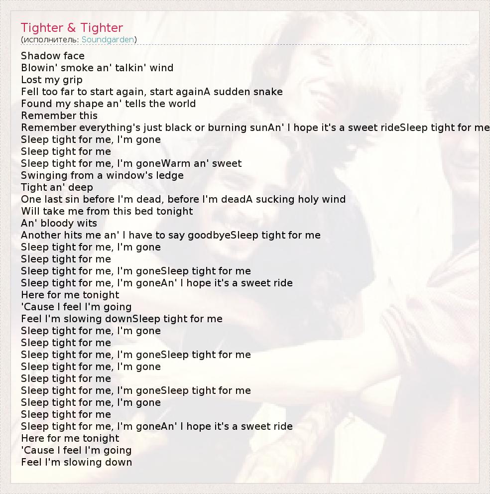 А как ты думаешь, о чем песня "Tighter & Tighter" ?